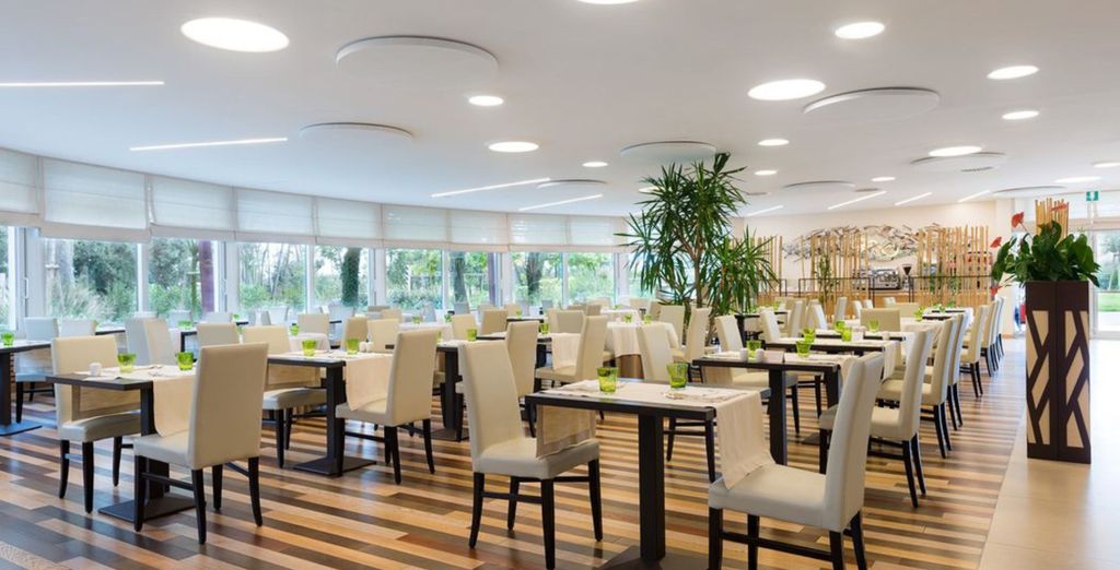 Durante il vostro soggiorno, vivrete un’esperienza gastronomica all’altezza delle aspettative. Il ristorante Hemingway propone deliziosi buffet con piatti internazionali e specialità venete a chilometro zero, mentre il ristorante à la carte Il Canneto vi conquisterà con proposte mediterranee raffinate e una curata selezione di vini. Ogni mattina vi attende una colazione ricca e variegata, con dolci fatti in casa e opzioni per ogni esigenza alimentare.