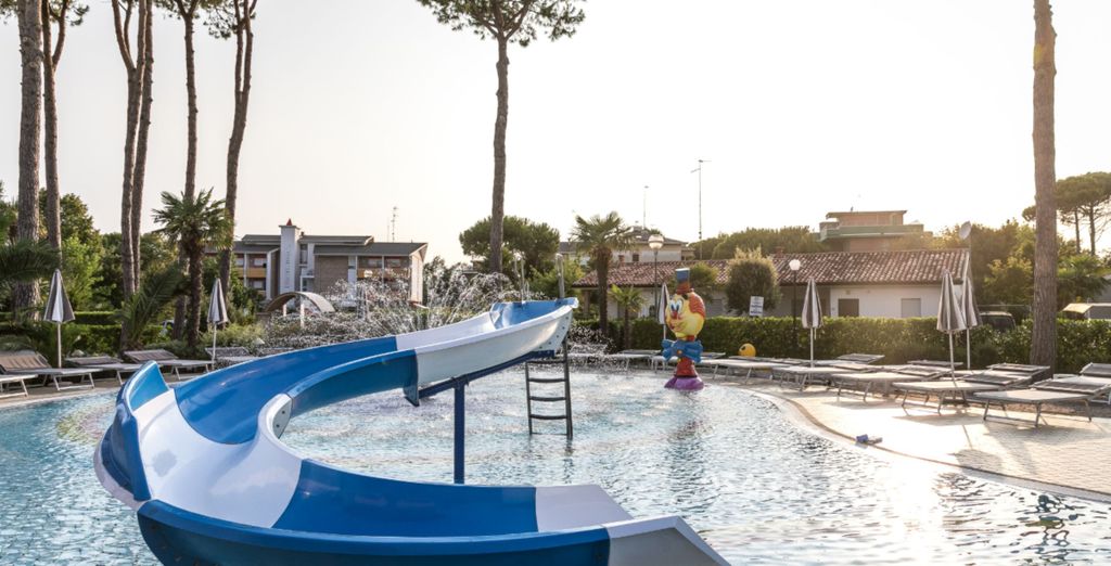 - Approfittare del centro benessere completo, spazi per il relax e attività divertenti per bambini e famiglie