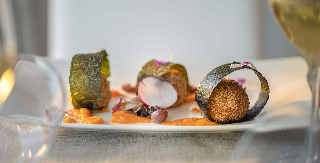 - Per soggiorni di minimo di 7 notti: una cena omaggio di due portate + mini-dessert, con 1 bottiglia d'acqua e un calice di vino a testa