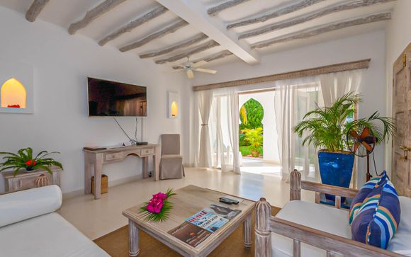 Accomodatevi nell'elegante Medina Suite, una sistemazione dagli spazi generosi e dagli arredi dai toni neutri e rilassanti. Immersa nel verde del giardino del resort e dotata di veranda, vi offrirà una cornice romantica per la vostra vacanza keniota.
