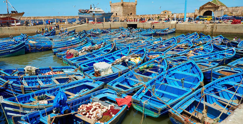 - Il magnifico panorama della Medina di Essaouira, città portuale con i suoi meravigliosi colori e molteplici festival tradizionali