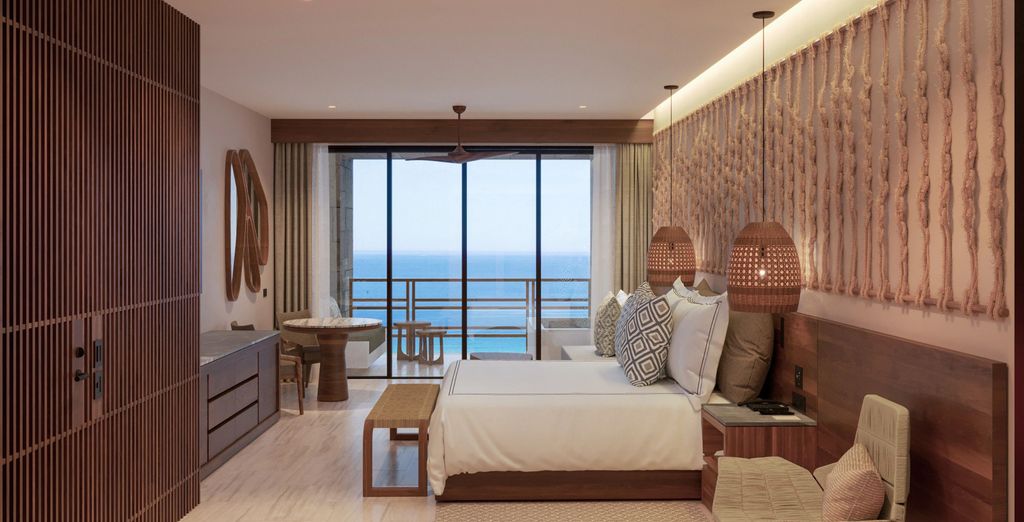Lasciatevi sedurre dall'ambiente rilassante ed elegante della camera Preferred Club vista oceano. Con il suo ambiente luminoso e arioso, i comfort moderni, il balcone con vista sul mare e l'accesso alle strutture e ai servizi del Preferred Club, questo spazio è il luogo perfetto per sentirsi a casa durante il soggiorno.
