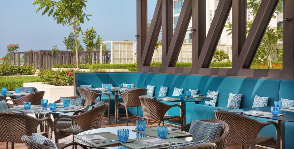 Durante la vostra vacanza non c'è niente di meglio che rilassarsi in un ambiente tranquillo. Fate un tuffo rinfrescante nella piscina WET di 1.800 metri quadrati prima di fare il pieno di vitamina D sulla spiaggia, di fronte alle acque cristalline del Golfo di Oman.