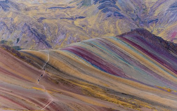 L'avventura inizia con il trasferimento dal vostro hotel al punto di partenza dell'escursione, prima di raggiungere la vetta dell'impressionante e colorata montagna di Palcoyo. Come la montagna dei 7 colori, conosciuta anche come Vinicunca, Palcoyo deriva il suo colore dai minerali come magnesio, calcio e ferro che la compongono e che si sono accumulati nel corso di milioni di anni e che oggi ci offrono.