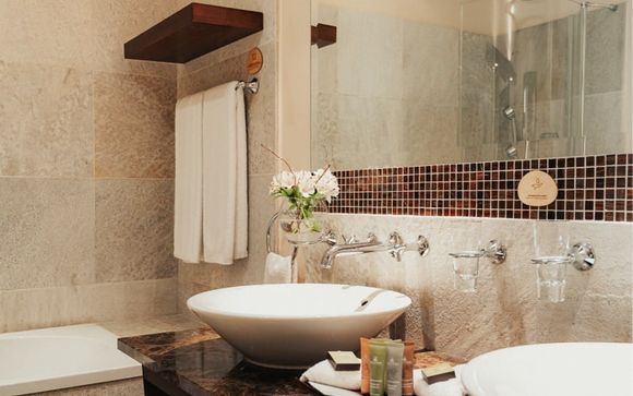 La camera Superior combina tradizione e modernità, con elementi come il legno, gli affreschi dipinti a mano, i banconi in marmo, gli specchi originali che nascondono i televisori e le porte finestre che garantiscono un'esperienza memorabile durante il soggiorno.