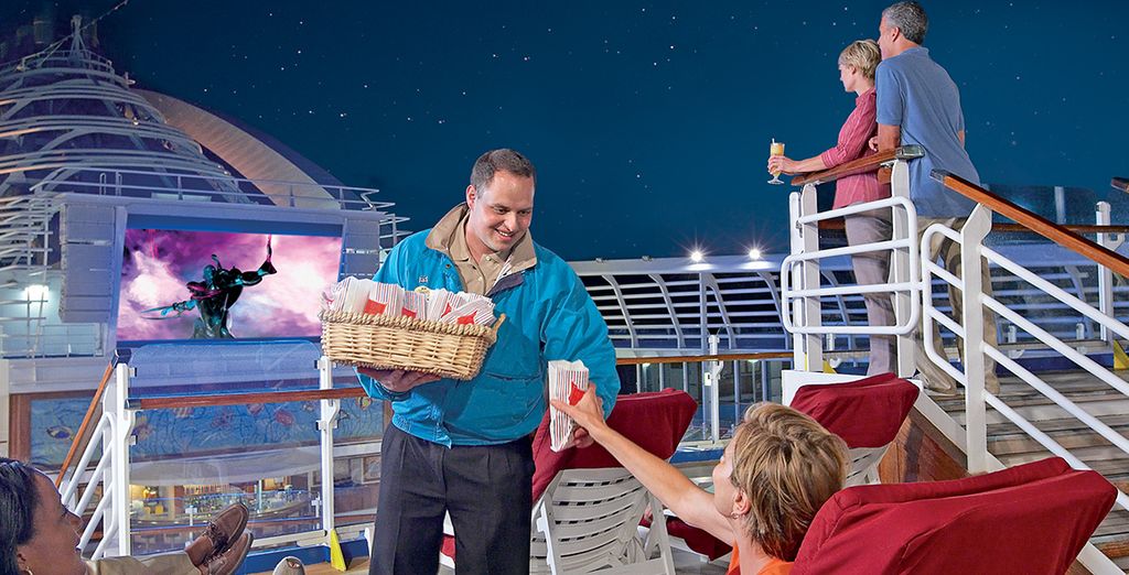 Un’esclusiva Princess per assistere a film, concerti ed eventi sportivi con il più grande schermo presente in mare - non dimenticate il popcorn!