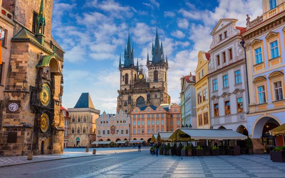 Passeggiate per la magnifica Città Vecchia, patrimonio mondiale dell'UNESCO, fermandovi a vedere il famoso orologio astronomico della città, il castello del IX secolo e il grande Ponte Carlo, completo dei suoi 16 archi e 30 statue barocche. Ammirate i giardini reali, e lo splendore della cattedrale di San Vito o del convento di San Giorgio e meravigliatevi della tavolozza di colori delle case del "vicolo d'oro", nate dopo l’incendio del piccolo quartiere pittoresco di Mala Stranà. E non perdetevi la rinomata Casa danzante, un capolavoro architettonico che ricorda la coppia di ballerini Ginger Rogers e Fred Astaire.
