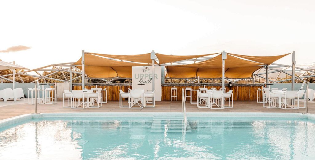 All'Upper Level, a pranzo e a cena fino a mezzanotte, potrete gustare una selezione di tapas accompagnate da un aperitivo, il tutto con una vista spettacolare sul Mediterraneo.