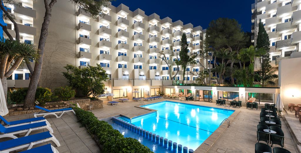 - Le piscine dell'hotel per godersi il sole di Maiorca e le diverse attività come il campo sportivo polifunzionale e la palestra