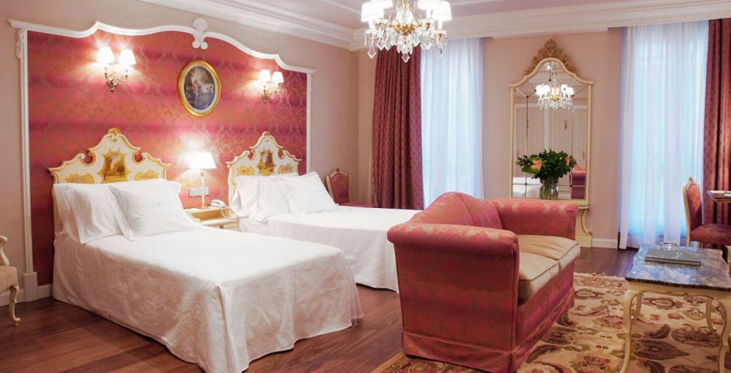 - Junior Suite Storica (45 m² / max 2 persone): vanta un panorama eccezionale sulla famosa Plaza del Castillo, un letto king-size e una doccia idromassaggio.
