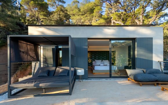 Scoprite l'eleganza della Villa Premium Deluxe Extra Garden, un rifugio esclusivo immerso nella Sierra Calderona. Rilassatevi nel giardino privato, nella piscina a sfioro o sulla terrazza panoramica. All'interno, comfort moderni come Smart TV, Wi-Fi privato e area lavoro rendono ogni soggiorno impeccabile.