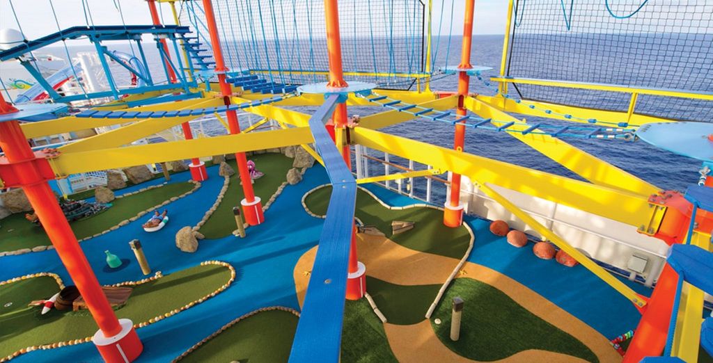 Per gli amanti dello sport, la nave dispone di un nuovo parco avventura (il più ampio sul mare) in cui potrete conquistare oltre 40 elementi destreggiandoti abilmente in questa struttura multipiano. Per il massimo del brivido, affrontate The Plank, che si estende lungo oltre 3 metri sulla parte laterale della nave.