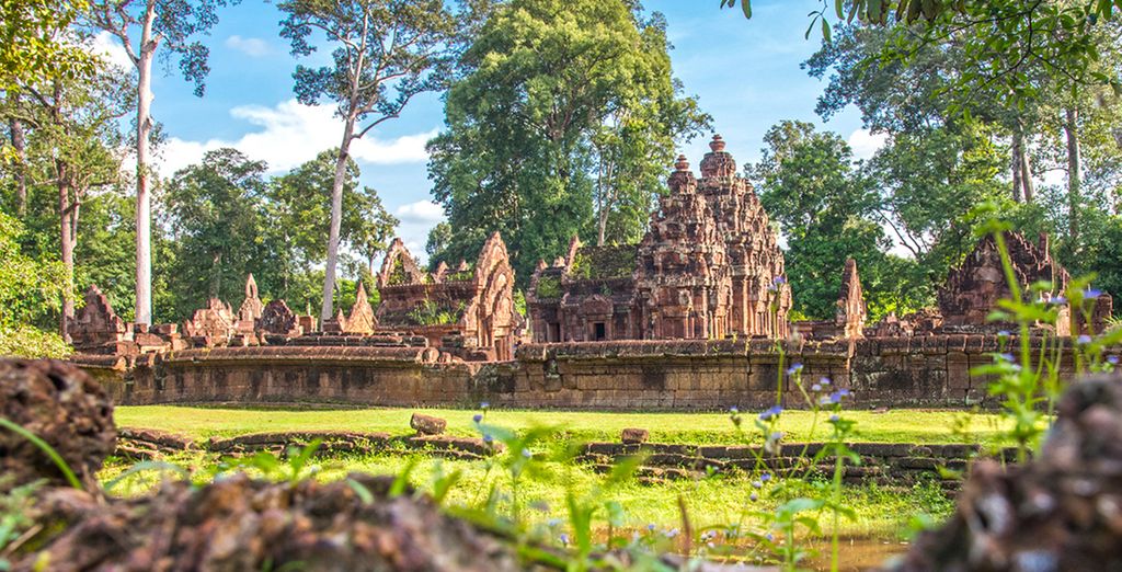 Prima tappa al PrasatKravan, una delle costruzioni più antiche di Angkor e costituito da 5 torri allineate tra loro. Breve tappa quindi alle Srah Srang (le “piscine reali”) prima di giungere nell’area dell’immenso bacino artificiale Yasodharatataka (nome moderno East Baray), oggi prosciugato, per il quale Re Yasovarman fece erigere possenti argini alti fino a 7 metri e disposti a pianta rettangolare con lati di 7600*1800 metri! Al centro dell’East-Baray, su una collina artificiale appositamente predisposta si trovano le sontuose rovine del tempio Shivaista Rajendraesvara (oggi noto come East-Mebon). Poco più a sud svetta la maestosa cinquina di torri del Tempio di Stato del Re Rajendravarman II: il Rajendrabadresvara, oggi noto come Pre Rup, un colossale “tempio-montagna” dalle imperiose proporzioni. Circa 20km più a nord troviamo invece uno dei capolavori artistici più raffinati e pregiati che gli antichi Khmer ci abbiano tramandato. Si tratta di un piccolo tempio interamente ricoperto di stupendi bassorilievi. Il nome originario di questo puro capolavoro d’arte è “Tribuvanamahesvara” che identifica il Dio Shiva quale il “Signore dei tre mondi”. Oggi il tempio è invece noto come Banteay Srei, la “cittadella delle donne”. Pranzo incluso in ristorante locale.
