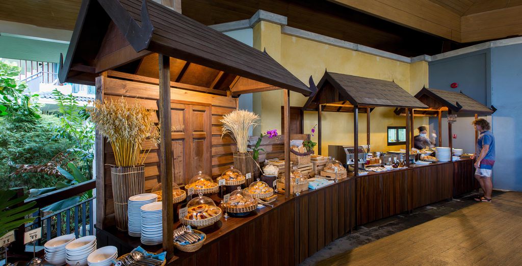 Concedetevi una deliziosa cucina internazionale e l'autentica cucina locale a base di pesce fresco presso il Chom Talay, che offe un ampio elenco di piatti caserecci preparati con ingredienti locali freschi e di qualità. Il ristorante si trova in cima alla collina, in una posizione ideale per gli ospiti e si affaccia sull'oceano, mentre brezza rinfrescante dalla cascata naturale nelle vicinanze vi farà compagnia. Inoltre, si può godere di un pasto in un ambiente naturale rilassante su grandi e comodi divani sulla sabbia bianca e fine presso il Deck Sand. Per un cocktail rinfrescante o uno snack veloce, invece, il Resort consiglia di recarsi presso uno dei tre pool bar: il Mango, il Papaya e il Pomelo.