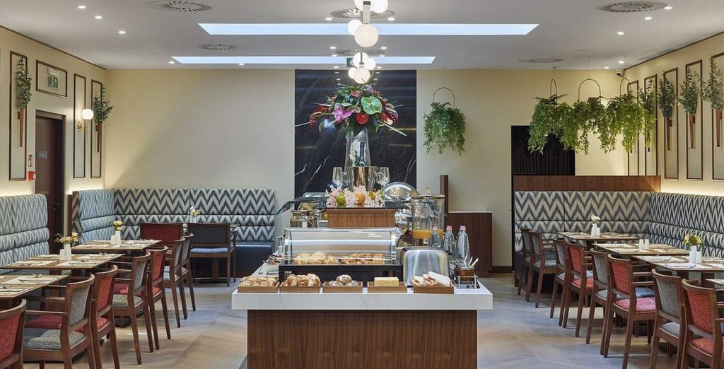 Iniziate la giornata con una deliziosa colazione nell'elegante e luminosa sala progettata con stile e raffinatezza, dove potrete gustare un buffet dolce e salato in tutta tranquillità. Lasciatevi viziare e scegliete tra un'ampia varietà di proposte locali e internazionali. Il Bistro Lounge, contemporaneo ed elegante, offre una selezione di piatti raffinati per i vostri pranzi e cene in hotel (con supplemento). Sorseggiate poi, in tutto relax, un drink sulla terrazza panoramica e ammirate la vista mozzafiato di Budapest con un delizioso cocktail dopo una lunga giornata di visite turistiche e shopping.